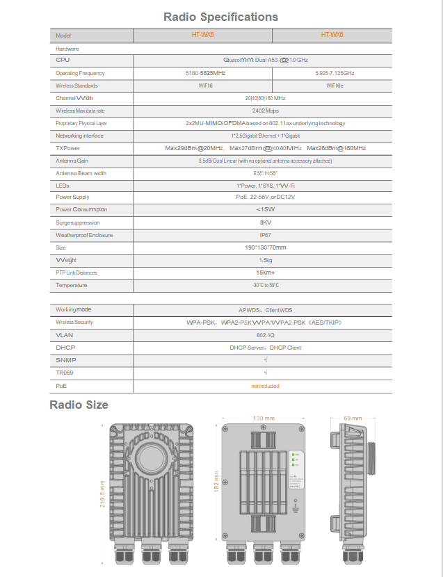 Wi-Fi 6 PTP & PTMP Fixed Wireless Solutions(6-7GHz)
